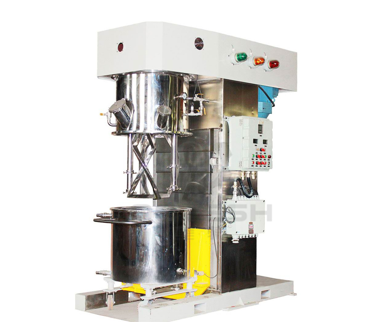 双行星动力搅拌机双行星动力混合机是一种新型且对多种混合液体、粉����� �������Ƴ����������� �������Ƴ������������ �������Ƴ������������ �������Ƴ�������体进行搅拌、溶解、分散、均质效率好����� �������Ƴ������������ �������Ƴ������������ �������Ƴ������������ �������Ƴ�������的搅拌设备。该设备配有高速、低速、活����� �������Ƴ������������ �������Ƴ������������ �������Ƴ����������� �������Ƴ�������动刮板部件,低速搅拌部件采用行星齿轮传动,搅����� �������Ƴ������������ �������Ƴ������������ �������Ƴ������������ �������Ƴ������� -